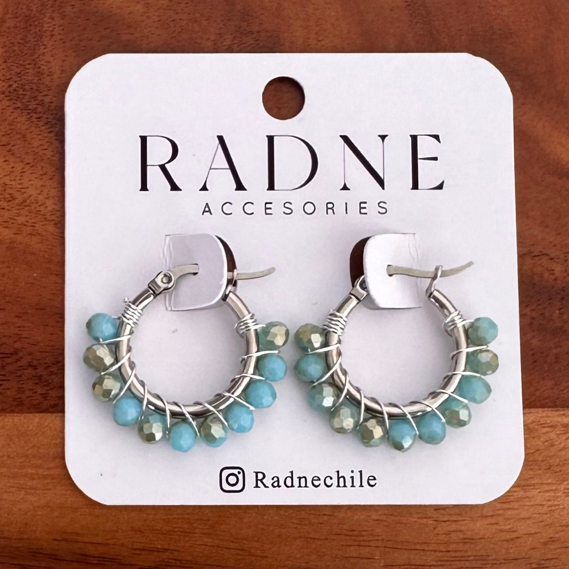 Aros cristales color turqueza. Argollas de acero inoxidable, hipoalergénicas. Medida 2 cm.